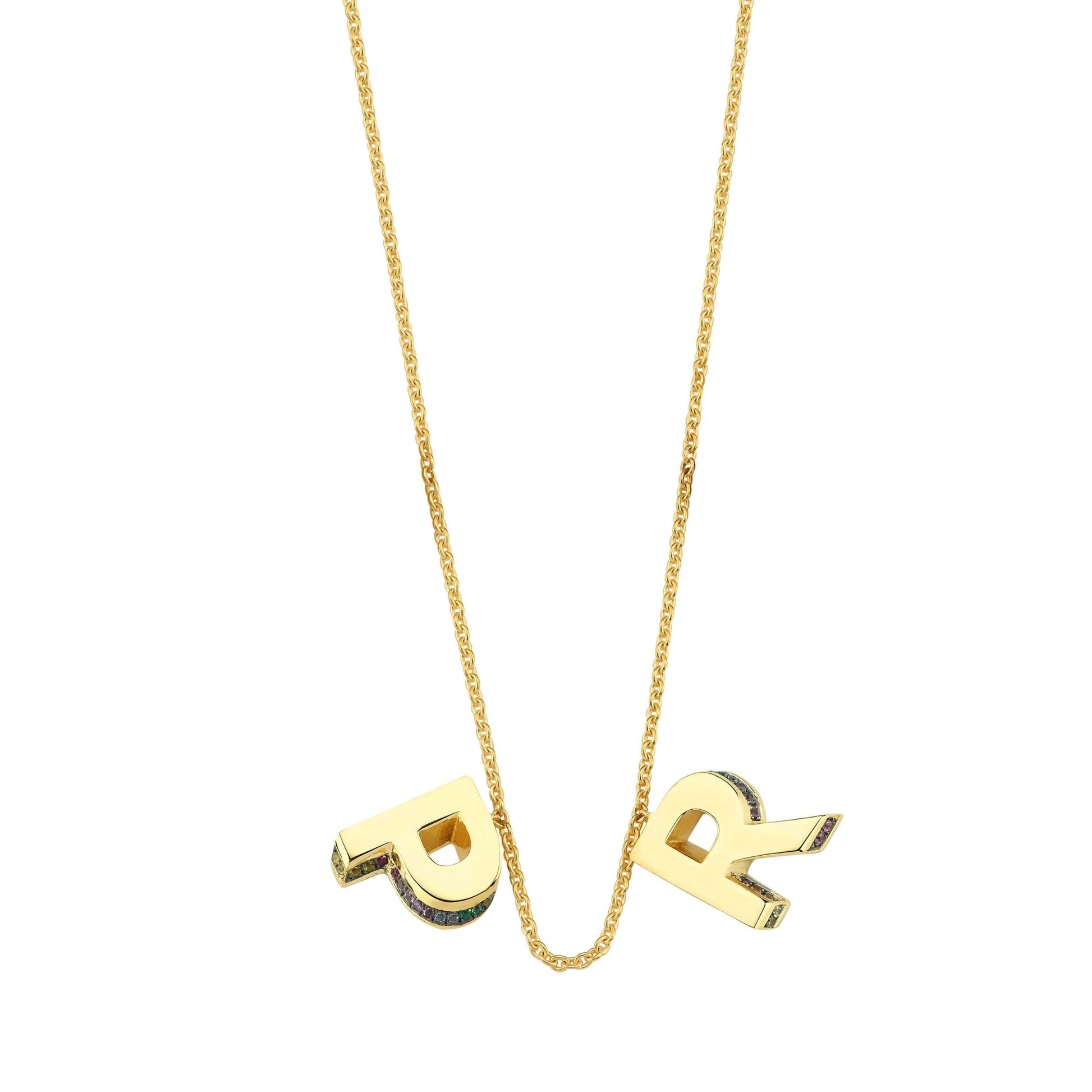 2 Letter 3D Mini Letter Necklace With Rainbow Sapphires