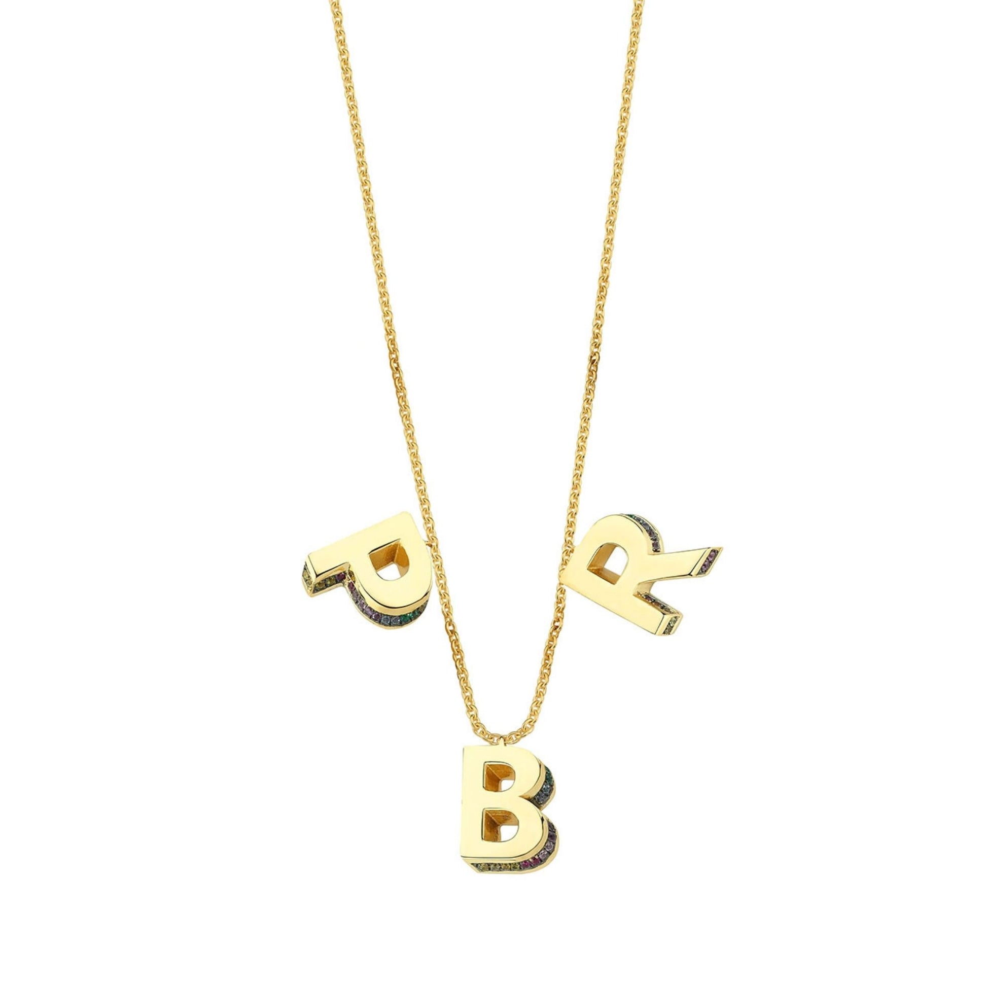 3 Letter 3D Mini Letter Necklace With Rainbow Sapphires