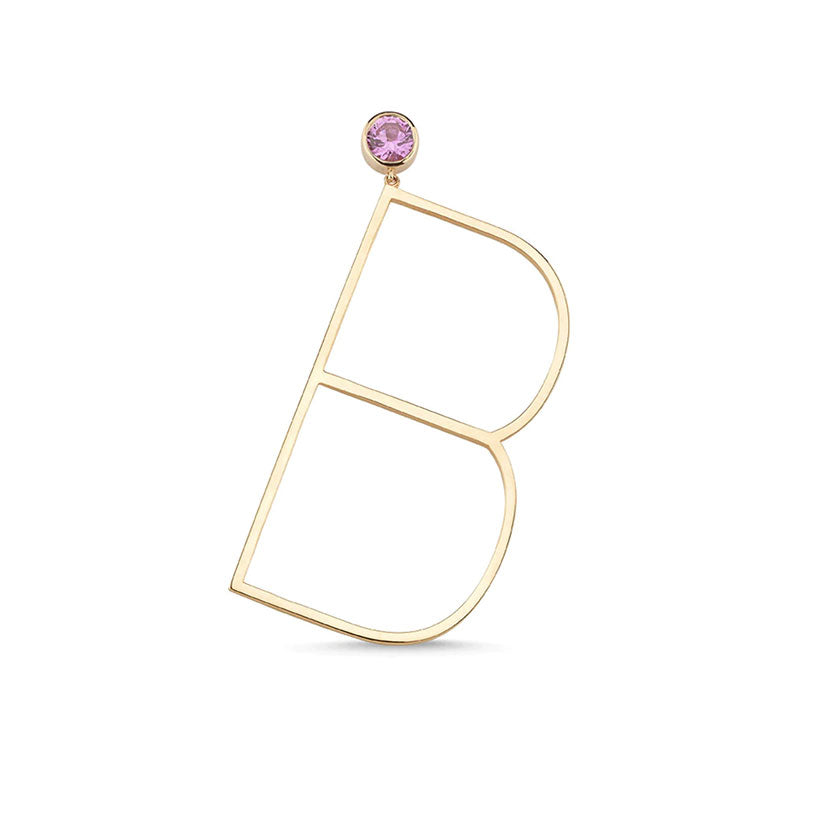 Large Size Pink Sapphire Rose Gold Letter Earring (Single)