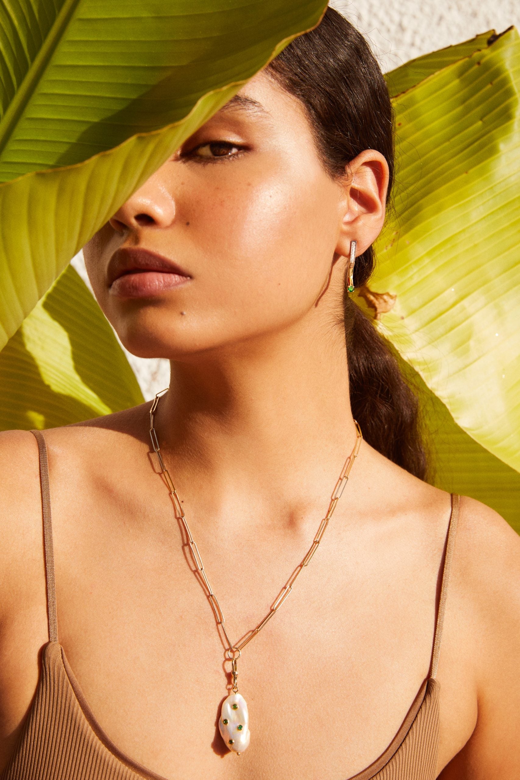Geometric Earring with Diamonds and Solitaire Emerald (Price for Single)
