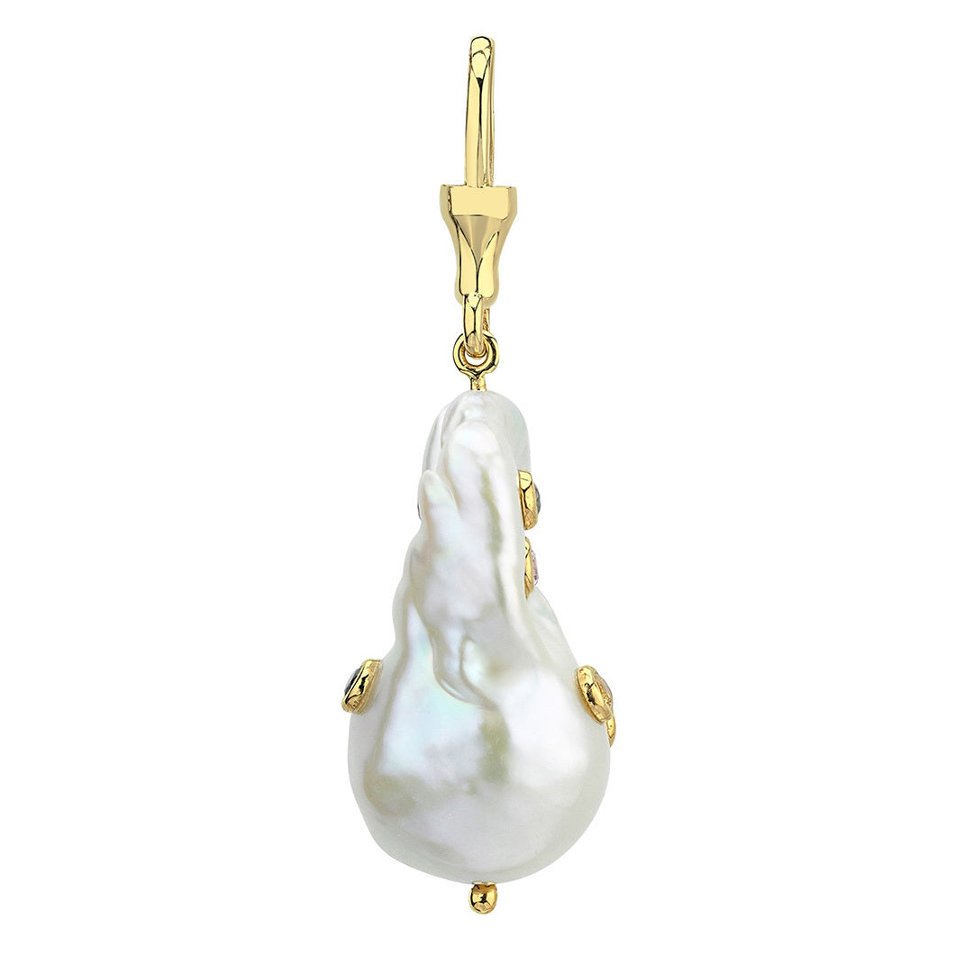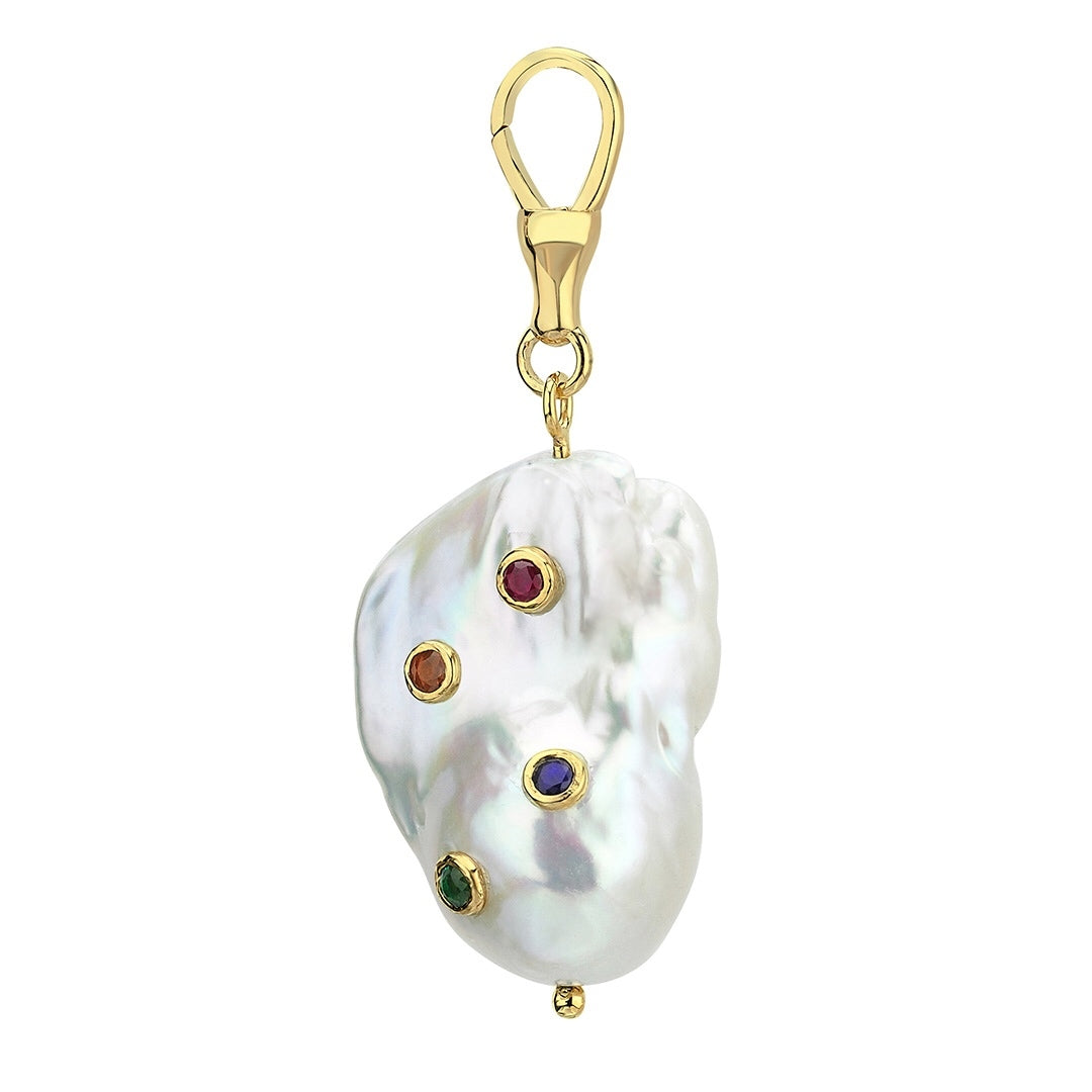 Large Baroque Pearl Hook Pendant with Rainbow Sapphires