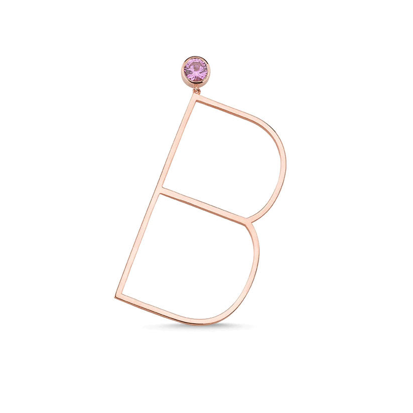 Large Size Pink Sapphire Yellow Gold Letter Earring (Single)