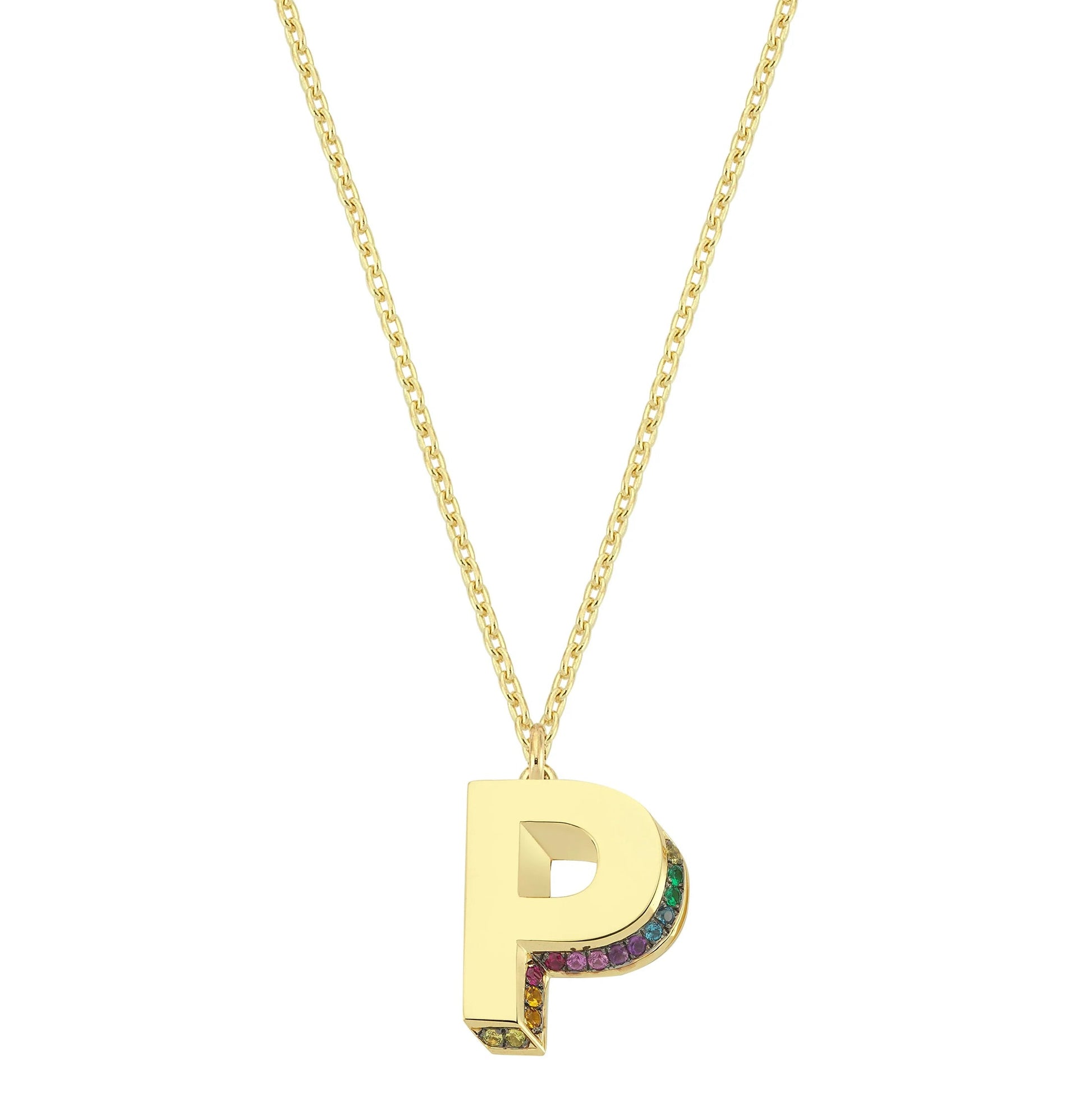 Mini 3D P Letter Necklace With Rainbow Sapphires