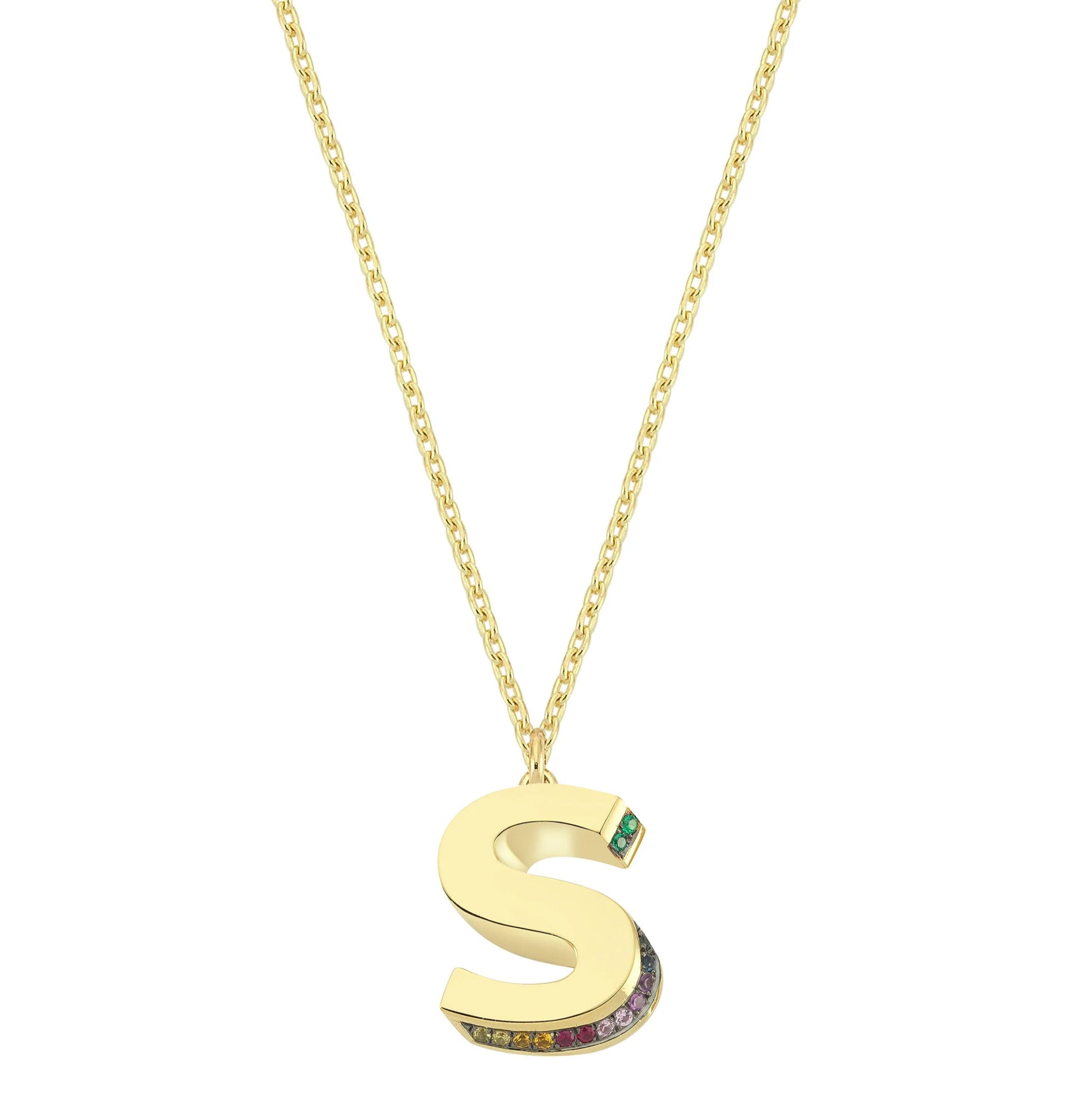 Mini 3D S Letter Necklace With Rainbow Sapphires