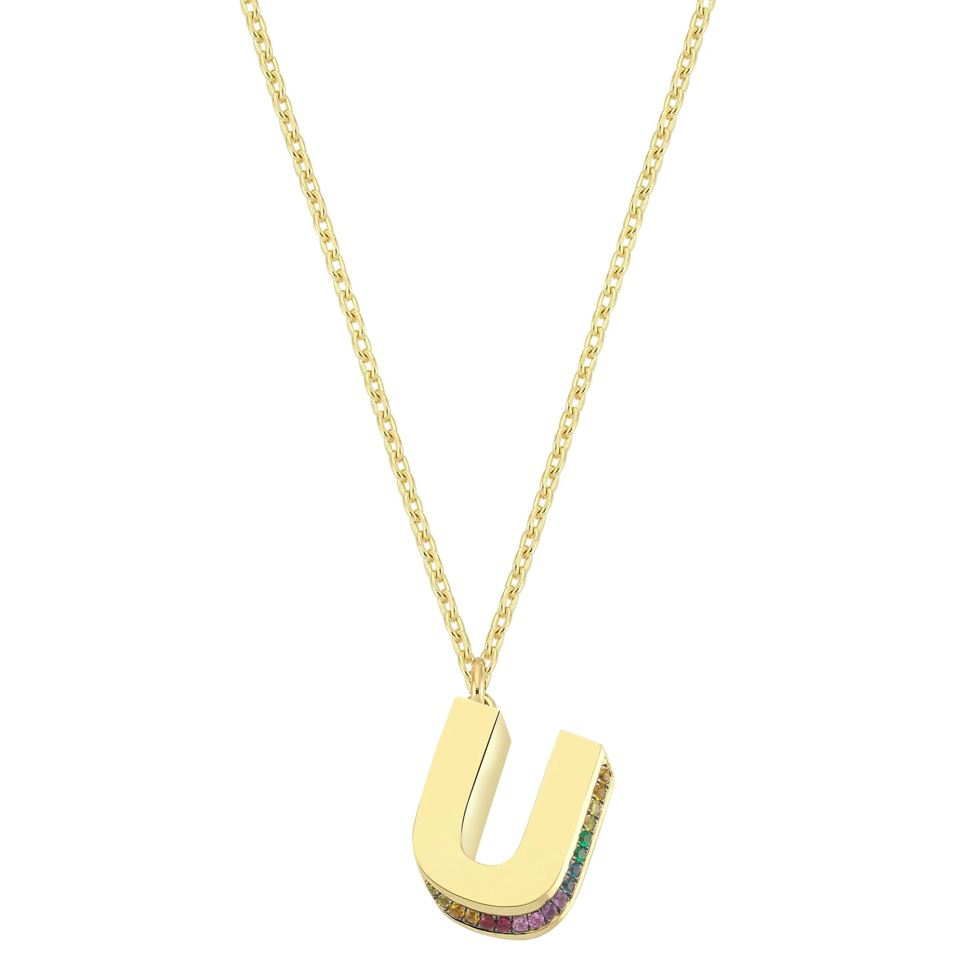 Mini 3D U Letter Necklace With Rainbow Sapphires