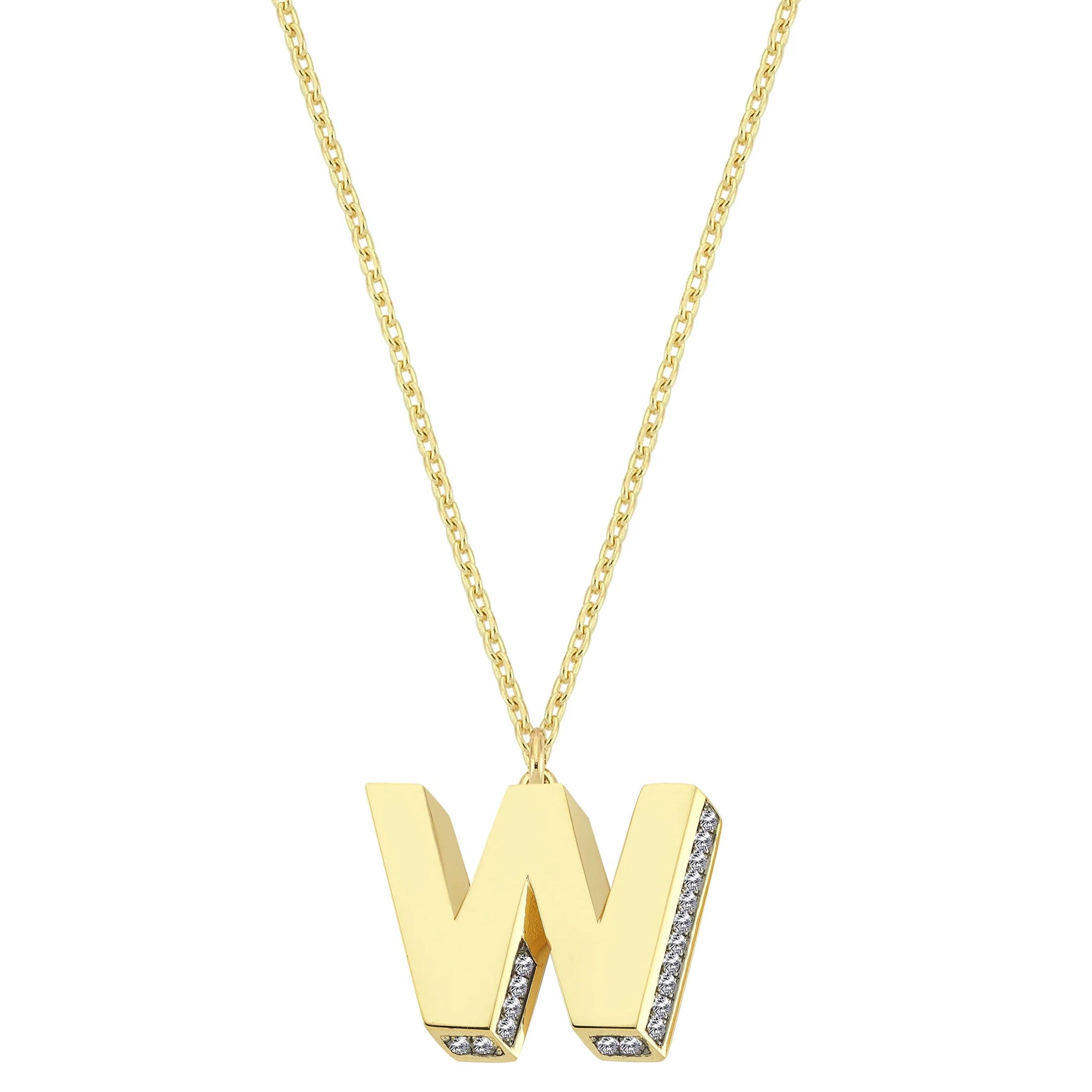 Mini 3D W Letter Necklace With Diamonds